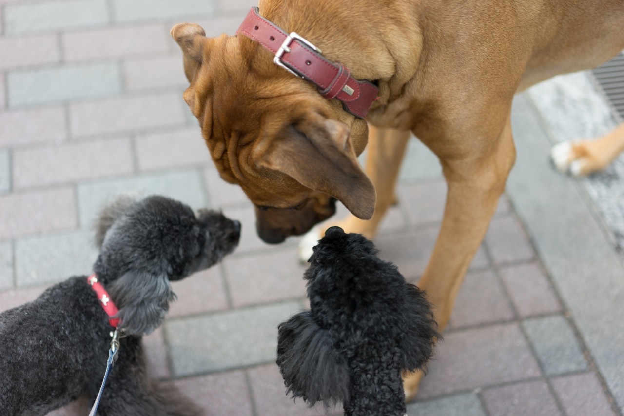 デッカいワンコがノーリードでお散歩してるし。。