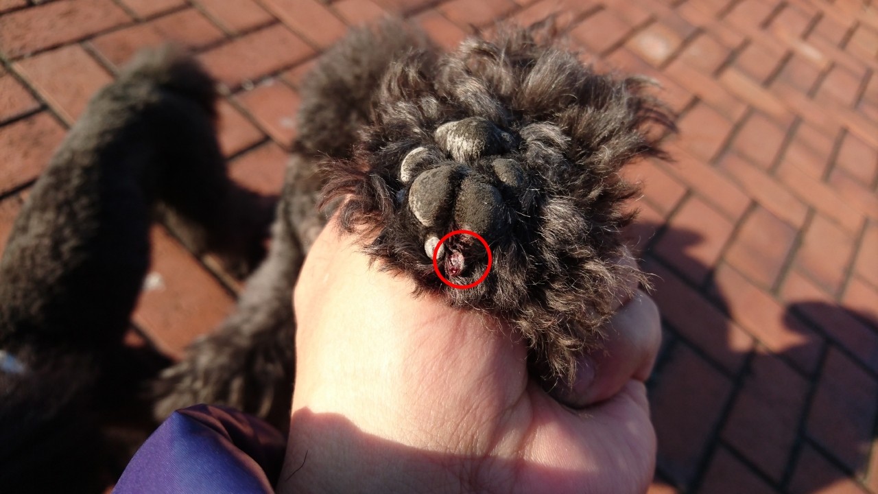 リリーは後ろ足の爪から出血。