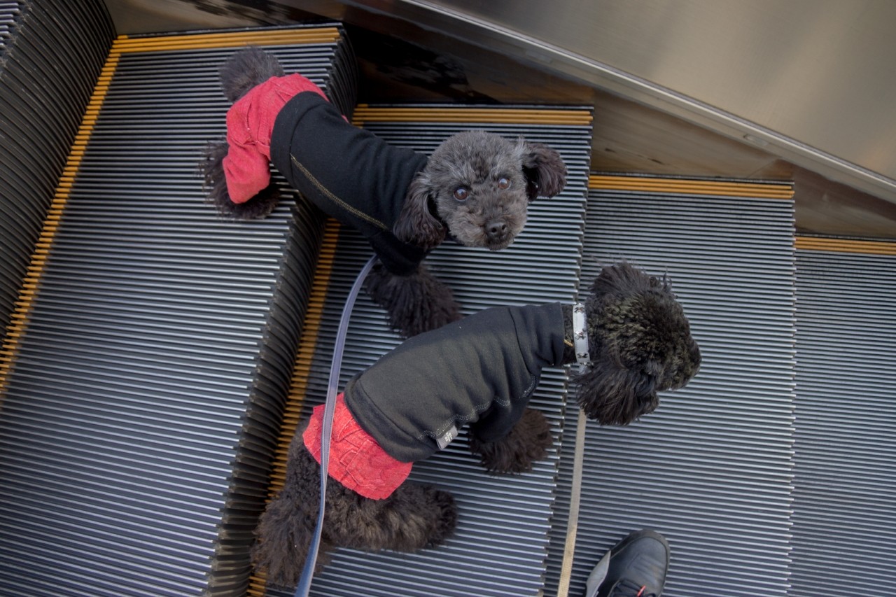 昭和通りを渡る、エスカレーター。。