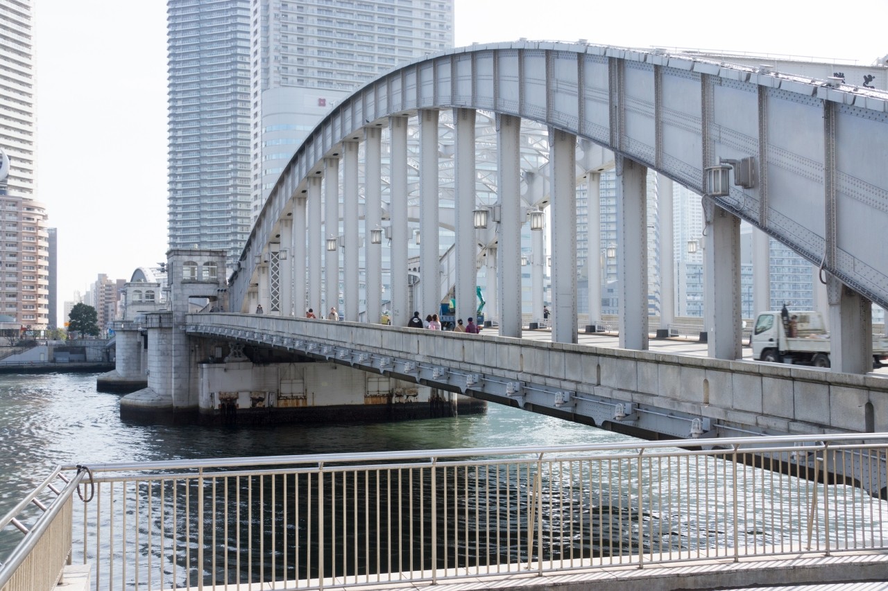 勝ち鬨橋のさらに海側に新しい橋。