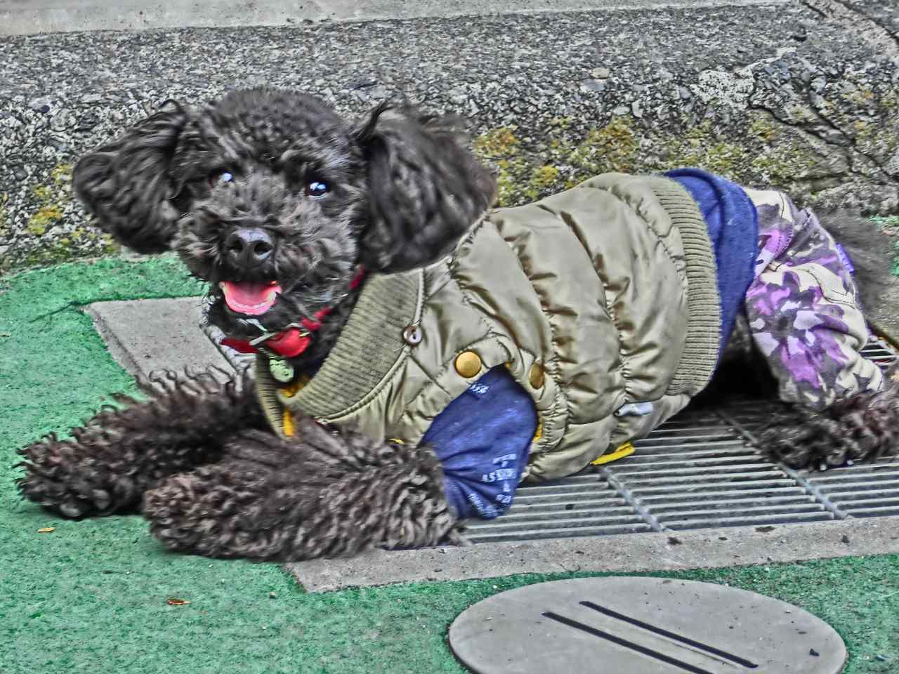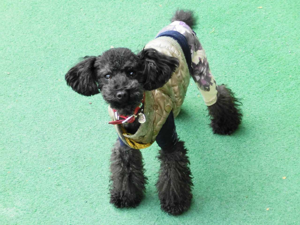 改名「銀座の静電気娘」なリリーは体中人工芝のカスがまとわりついてグリーンなトイプーになっちゃってくれてます。。。