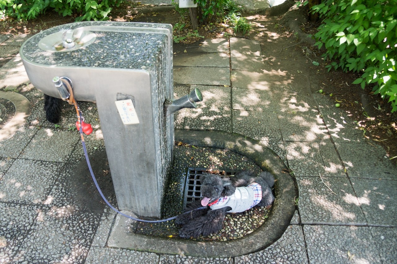 今度は聖路加ガーデンの水道で休憩ぇ~