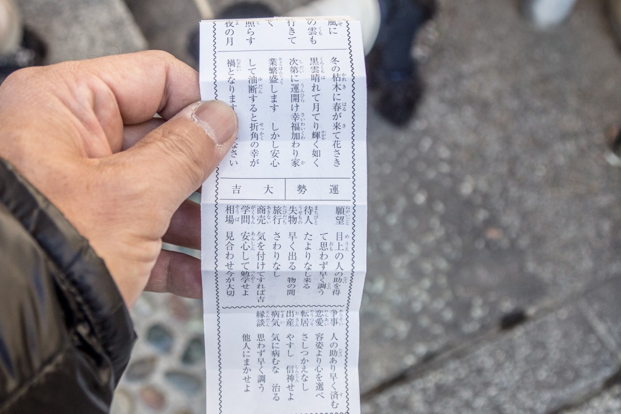 ん?おみくじ・・・まだ書いてあらー。「恋愛 容姿より心を選べ」・・・・・・。