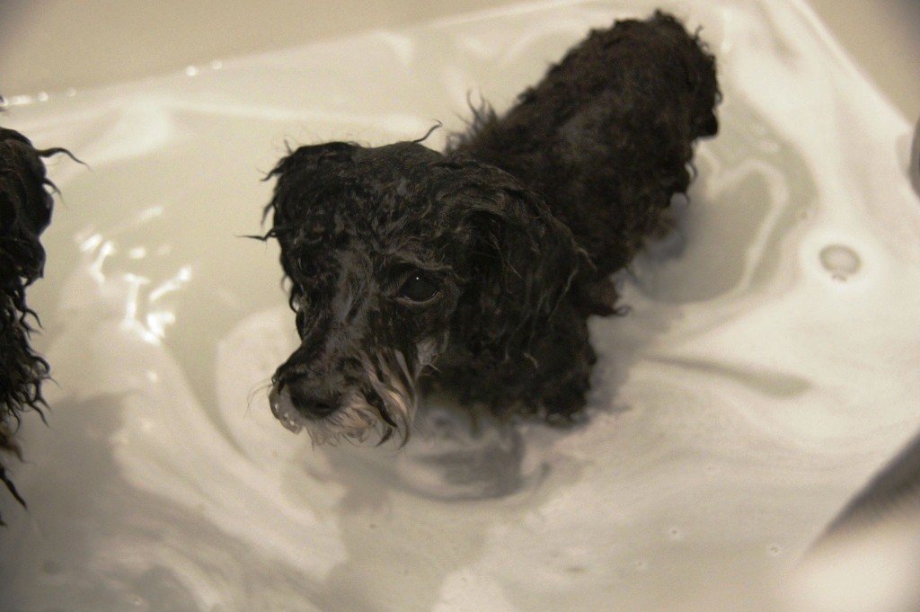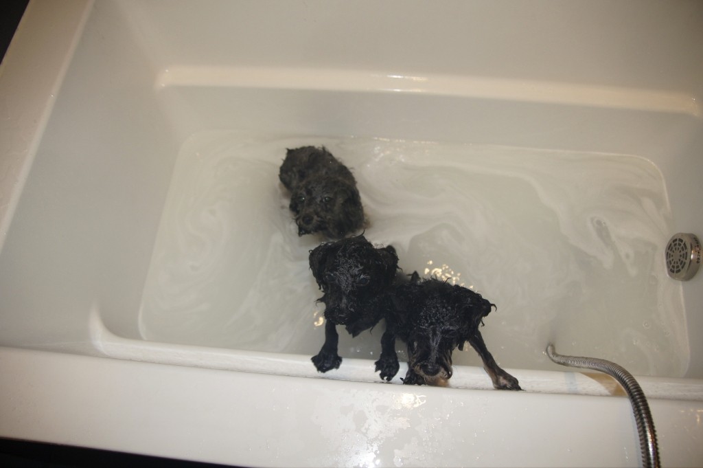 今日の引き渡しのために、3パピー一緒の最後のぽちゃ(お風呂)して。