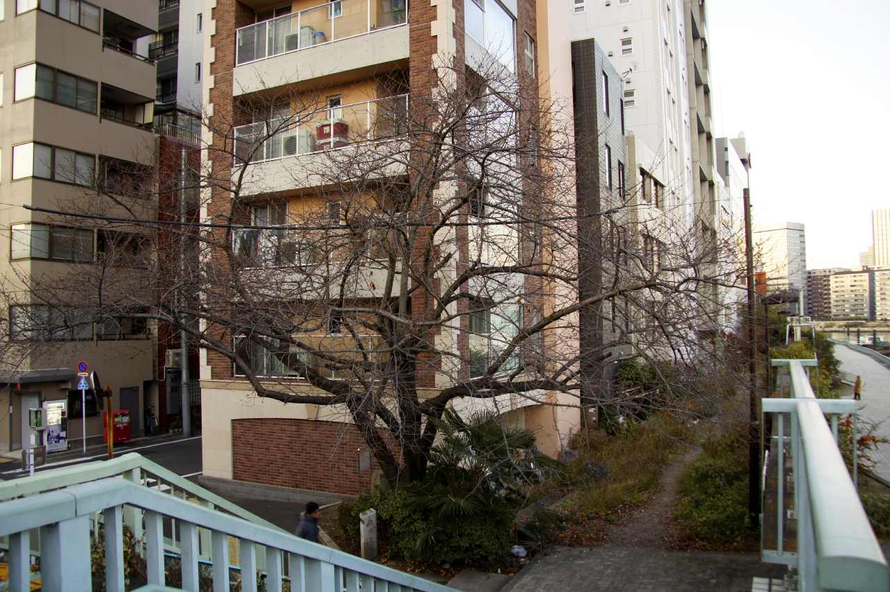 春にはキレイに咲き誇る佃大橋のたもとの桜が冬を物語ってくれてます。