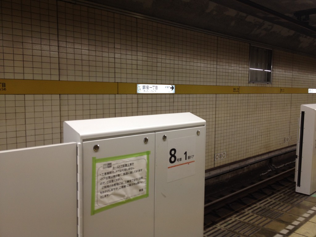 ここ、銀座1丁目駅もホームに塀作ってんだね。。ほほー、、とか思ったりして。。
