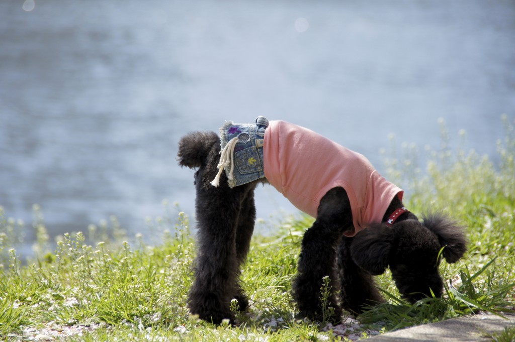 リリーは散り落ちた桜の花のくんかくんかに夢中っす。。