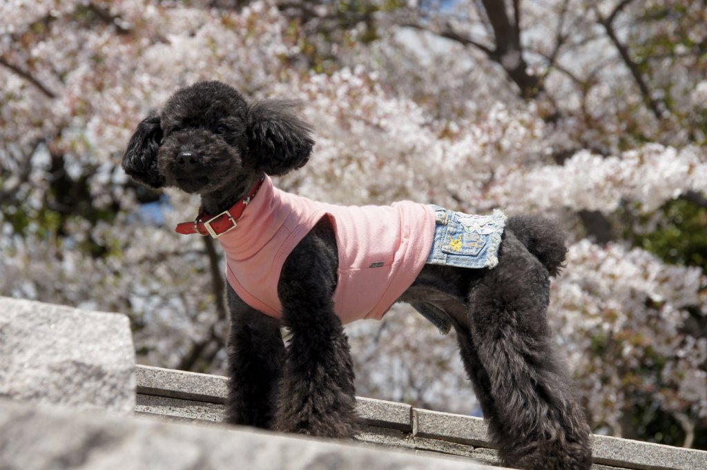 聖路加ガーデンの桜をバックにリリーちゃま。。