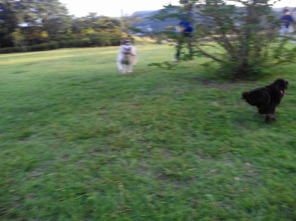 んで、ワンちゃんによっては狩りの対象物になっちゃうような気がしてやや心配でしたが、周りのワンちゃんにも馴染んできまして、仲良く遊び始めた次第。。