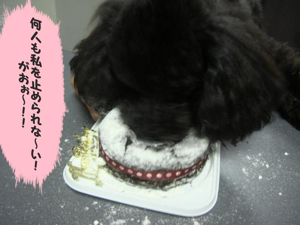ケーキの一人食い・・・ど真ん中から食べるリリーちゃん、やっぱかっこいいです