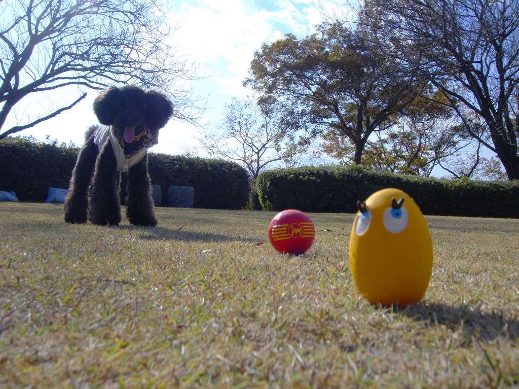 ということで、いつもの赤いボールは出さずにタマゴちゃんで遊びます。