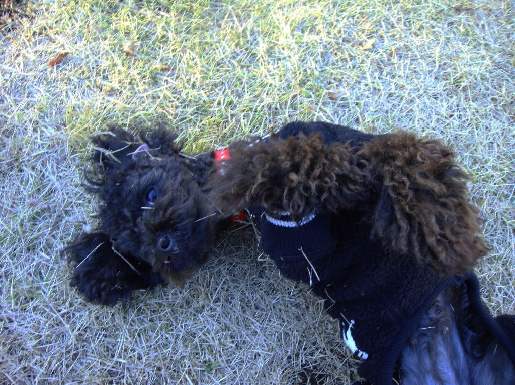 で、ワン服脱がされて、今はpapaの元で、ストーブ抱きしめて寝ております。。