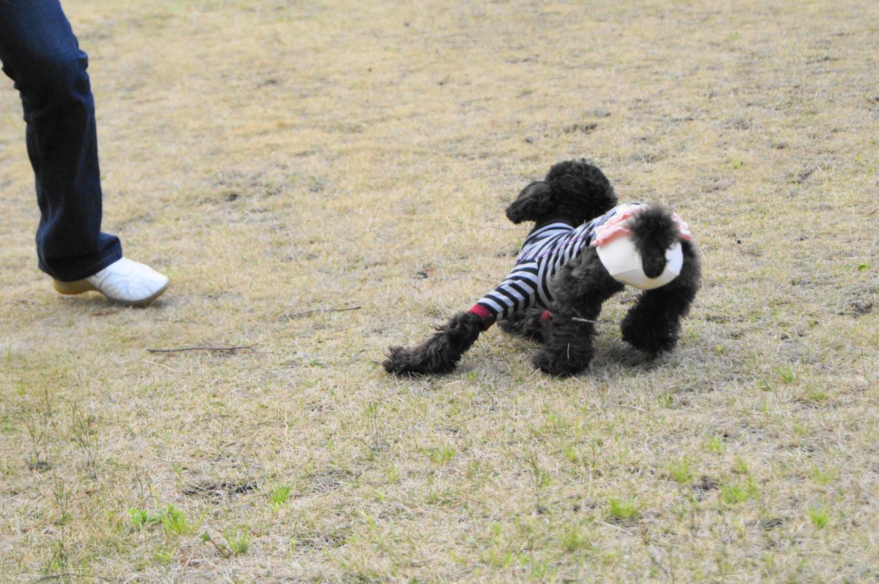 しまいにゃ、自業自得なのに、鼻にくっついた枯芝がとれなくってイジ焼けてる脳みそティーカップちゃん。。