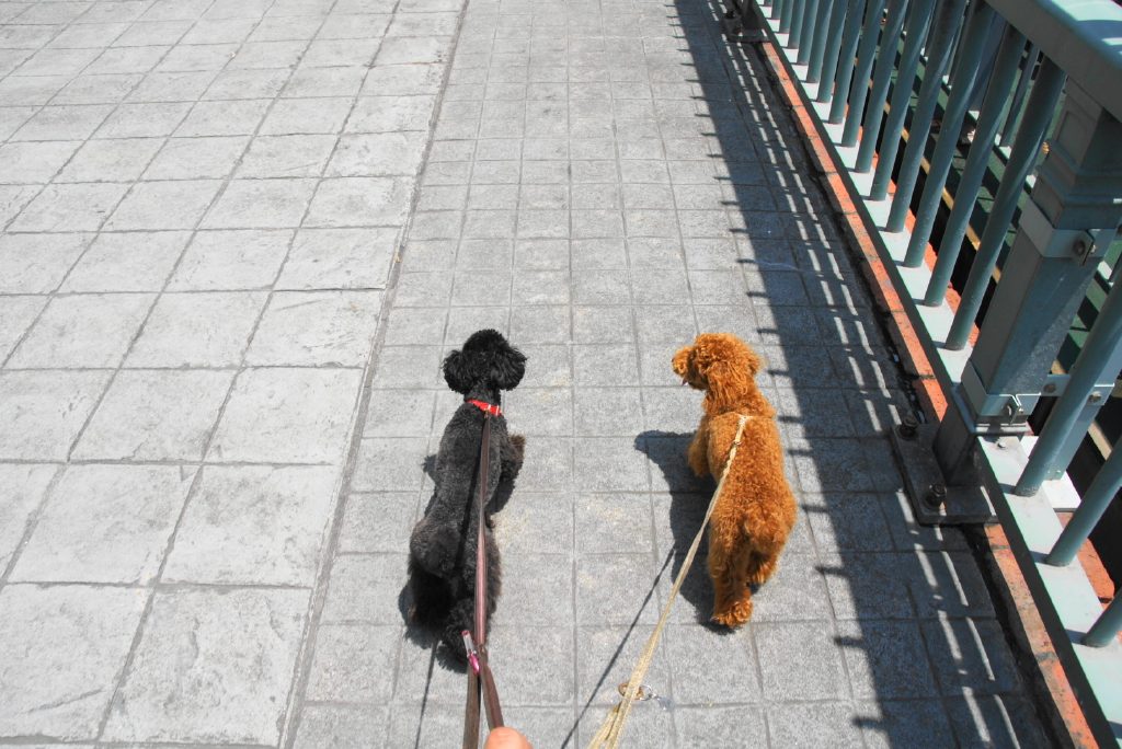 リリー&優芽(ゆめ)は暑いみたいで、舌出しっぱウォーキング。。