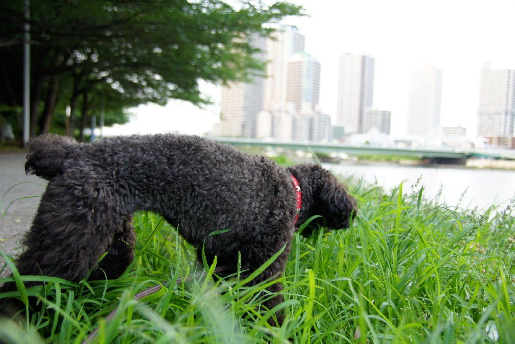 理想なお散歩とは、築地川公園わんわん広場ドッグランに入る前に、軽くお散歩すること。