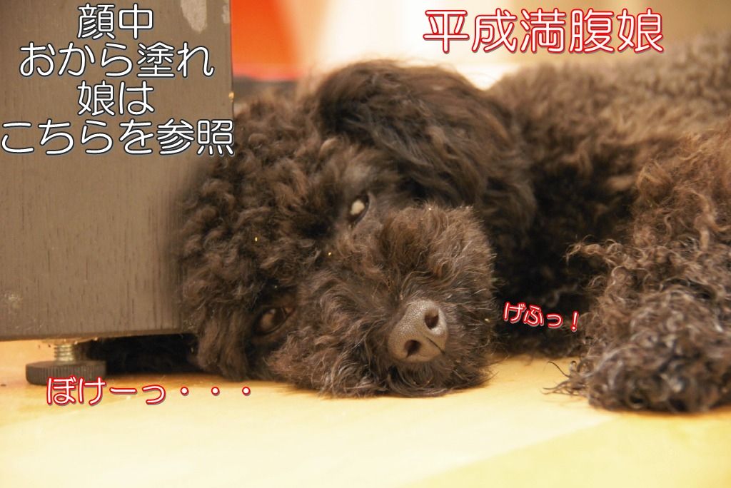 リリーなんか、勢いよくガッツ食いするからおからがはじけ飛んで、顔中にくっついております。。(笑)