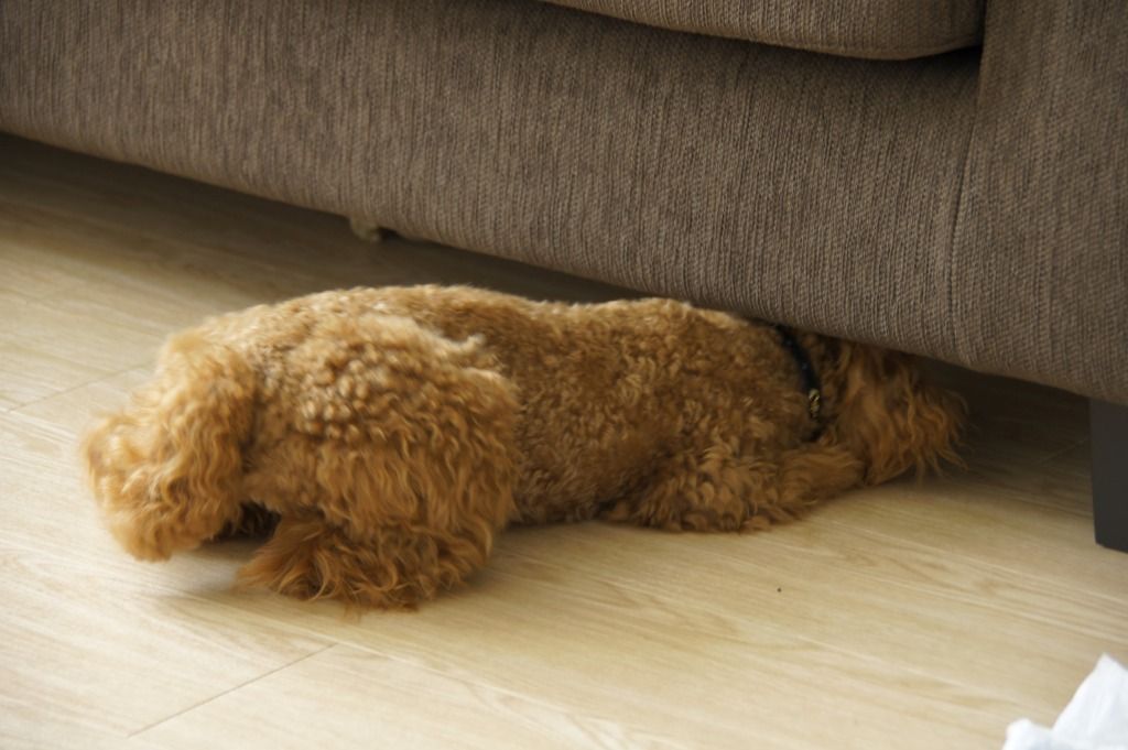 ソファの上からこれをリリーの頭の上に落としたんでありまして。。。