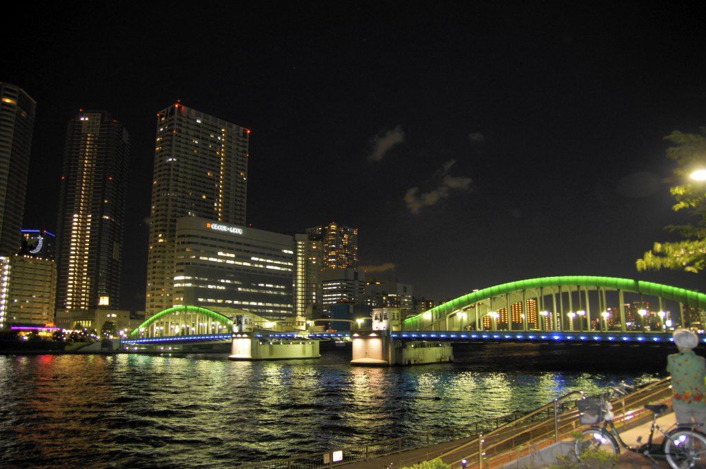 ちょうど、聖路加ガーデン手前ぐらいから見えた今夜の佃島の高層マンション群。。