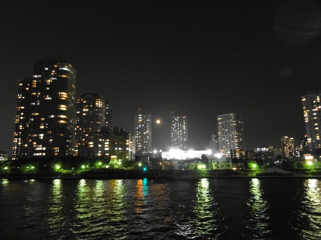 で、夜の10時半、、いよいよpapa&お春mamaが釣り竿持って隅田川テラスへ・・・
