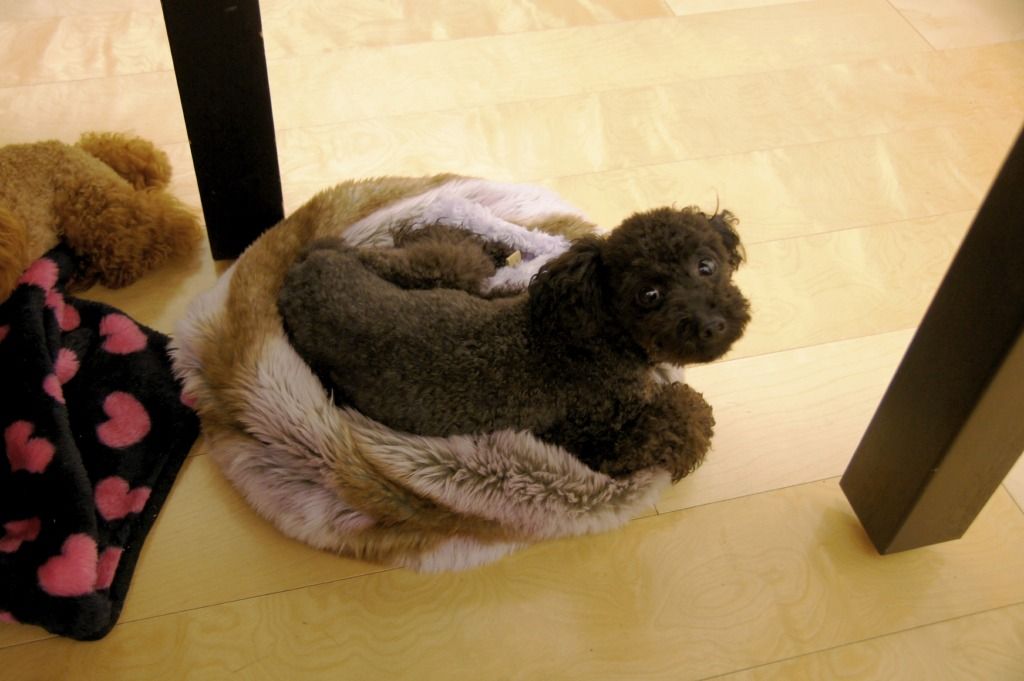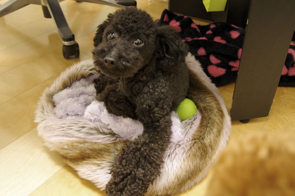この後も、papaのデスク下で、まるで卵を温めるがごとく、、マイボールを大切にしておくつろぎのリリー。。