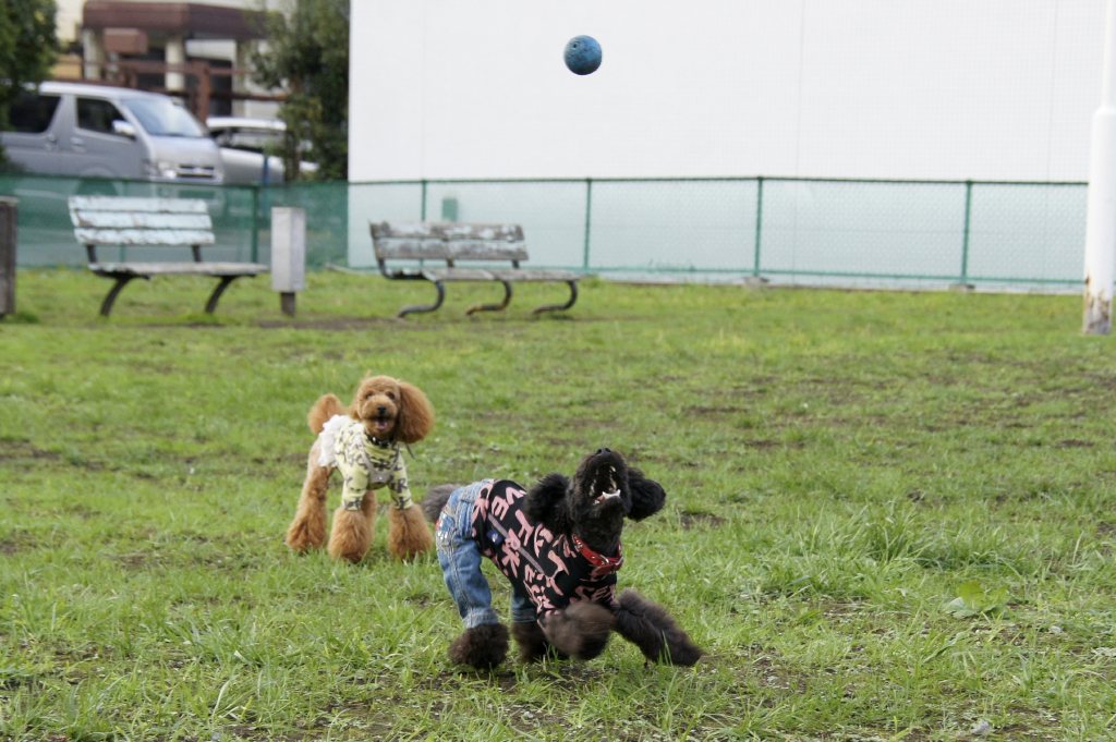 某公園でボール遊び開始。。
