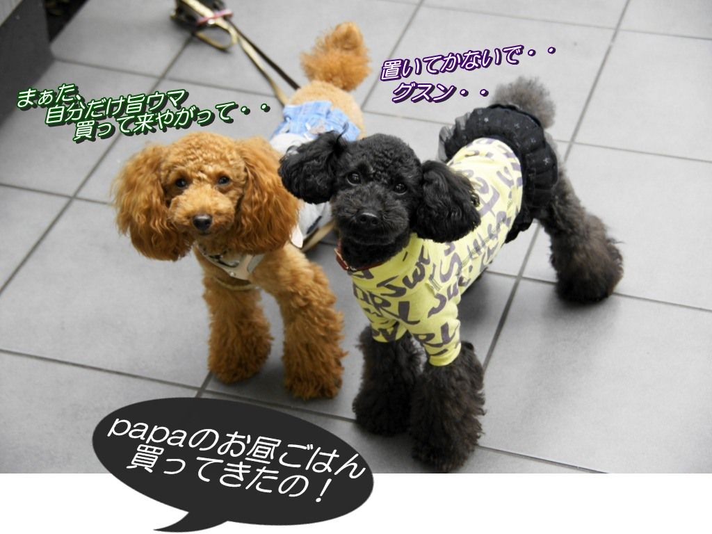 もう、どこにも行かないって!!お昼ごはん買ってきただけじゃんかー!!