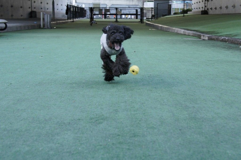 優芽(ゆめ)っ娘もボール遊びの時はめん玉ひんむいて走ってくれてます。。