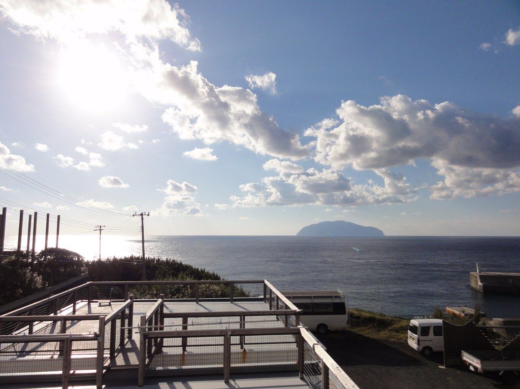 今回お世話になる民宿の部屋からはさらにその先の御蔵島が見えまして。。