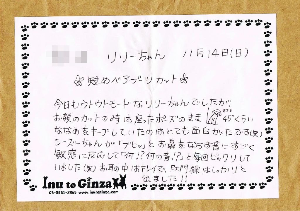 朝一番でリリーをInu to Ginzaさんの横谷マネージャーに預け、いつものリリーちゃんカットをばお願いします。