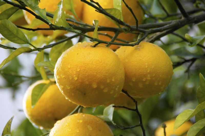 お庭のミカンもまだ濡れてます。。