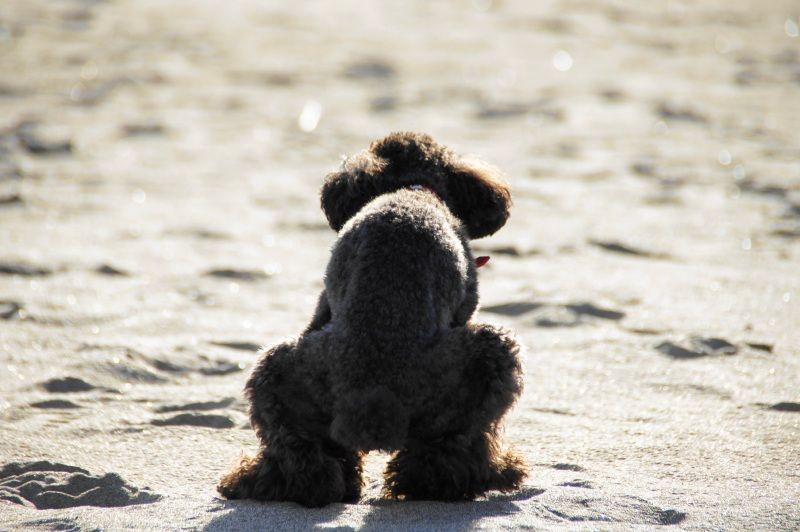 砂浜でウンチくんタイムな黒い子悪い子悪魔の子(笑)