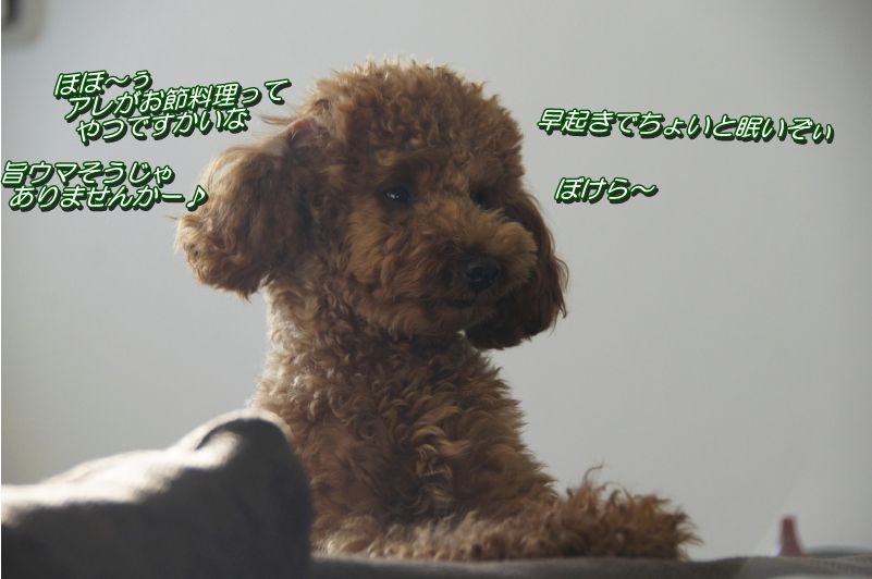 で、新年最初の朝はモチ!!お節料理を堪能なpapa&お春mama。。