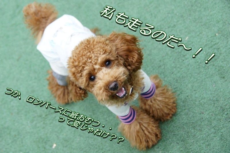 優芽(ゆめ)っ娘は上下繋がったロンパースの上から紙おむつ・・・という半ば、ガイキチ?なこーでねーとでドッグラン参戦。。