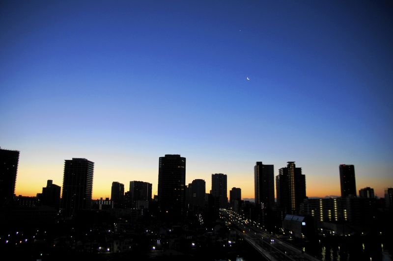 なんつーの。。瑠璃色と朝焼けの都会の朝がやってきました。。