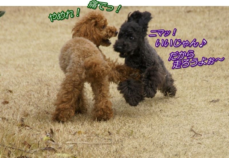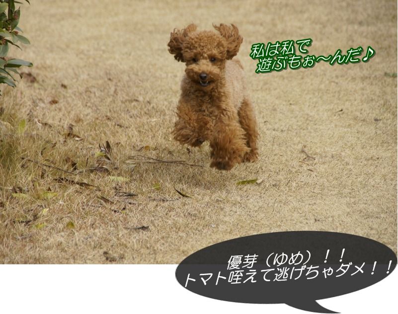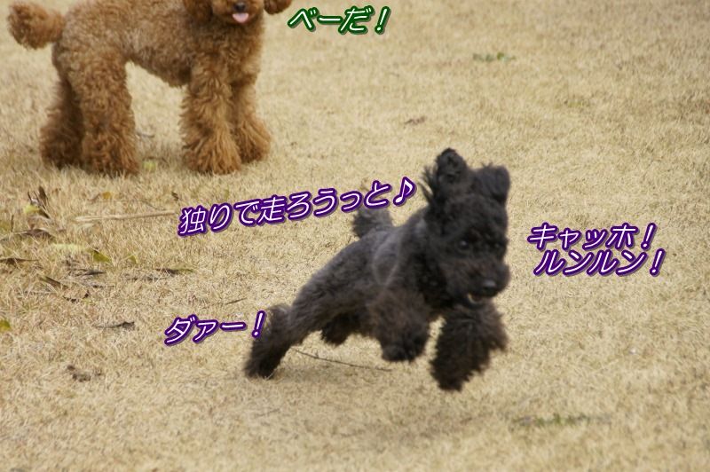 ボールは持ち合わせていないもんで、、テキトーな木の実拾って咥えていきなり走り出す始末。。(笑)