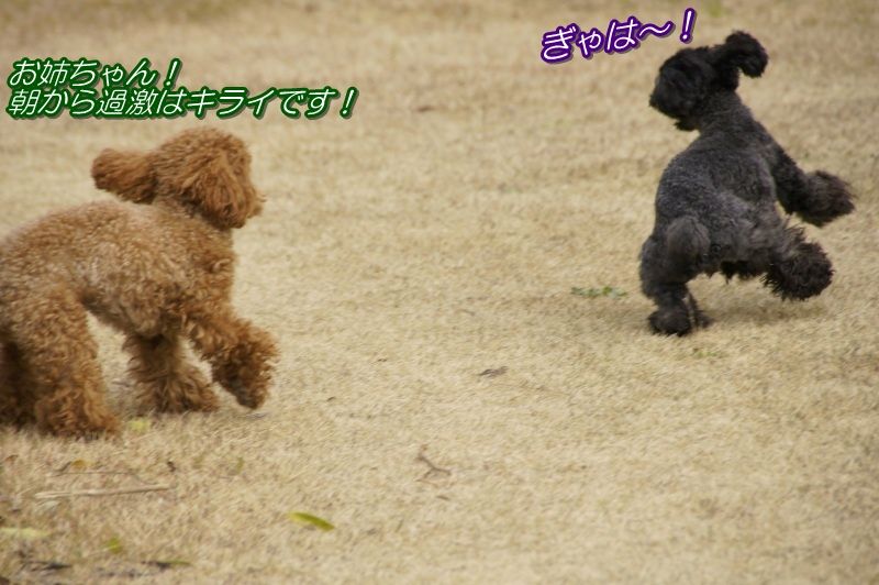 出来る限り黒いお姉ちゃんに近づかないで朝の自宅ドッグラン?タイムを満喫したい優芽(ゆめ)。。
