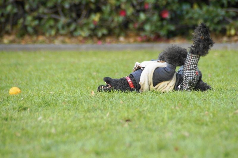 リリーのゴロンゴロンで体中に枯れ葉がまとわりついちゃったんで、、、