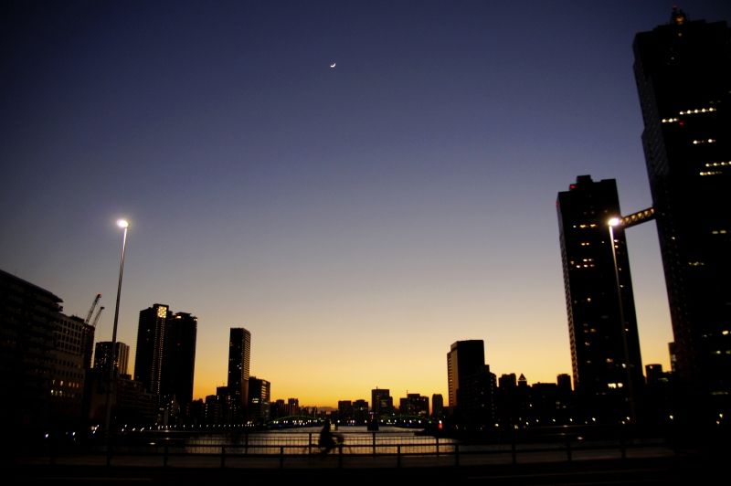 佃の橋を渡った頃にはこんな感じで暗くなってきちゃいました。