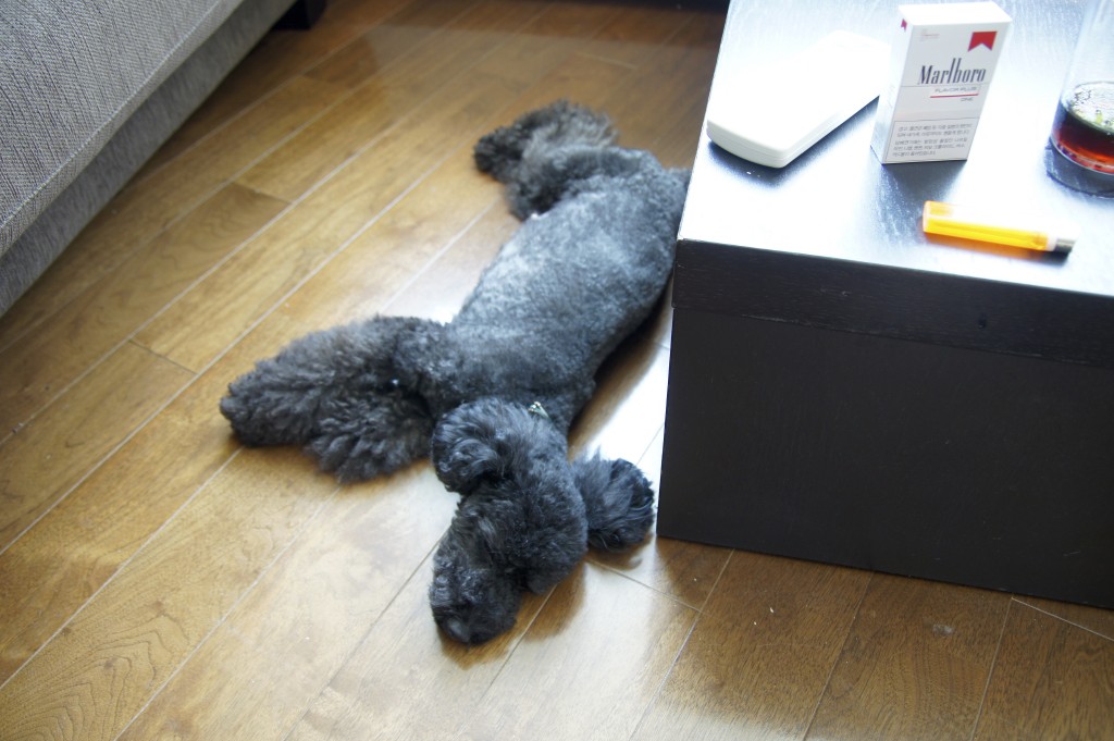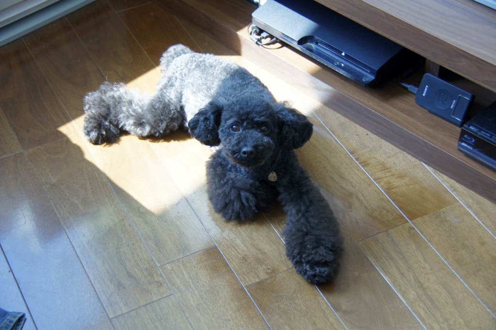 リリーは朝ごはん食べ終わって、ウンチくん爆弾投下後は、決まってここでひなたぼっこ。。