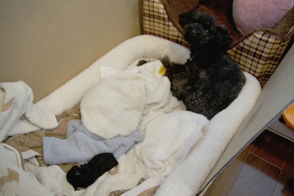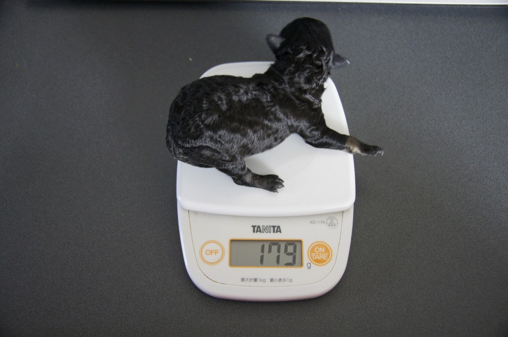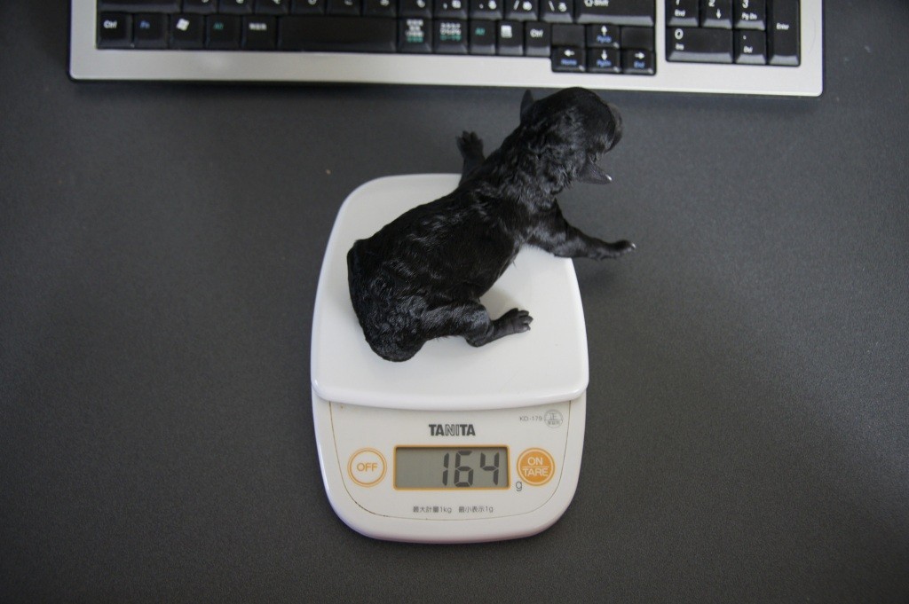 お産2日目のリリーの体重は一気に3.4kgまで落ちてます。昨日から100gもだ。。。