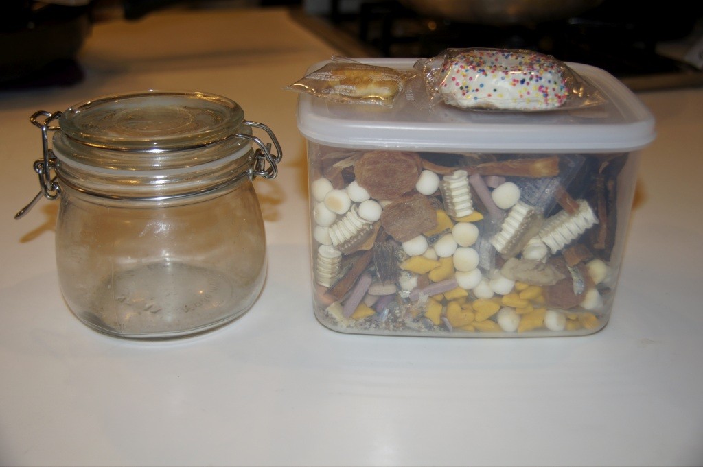 育児が終わるまでは、右のでっかいタッパーに入れることにしました。。