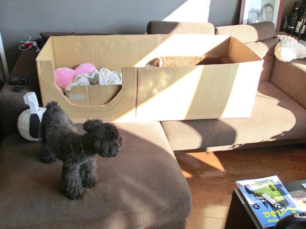 そんな、今日はお産箱ごと、リビングへプチ移動。。