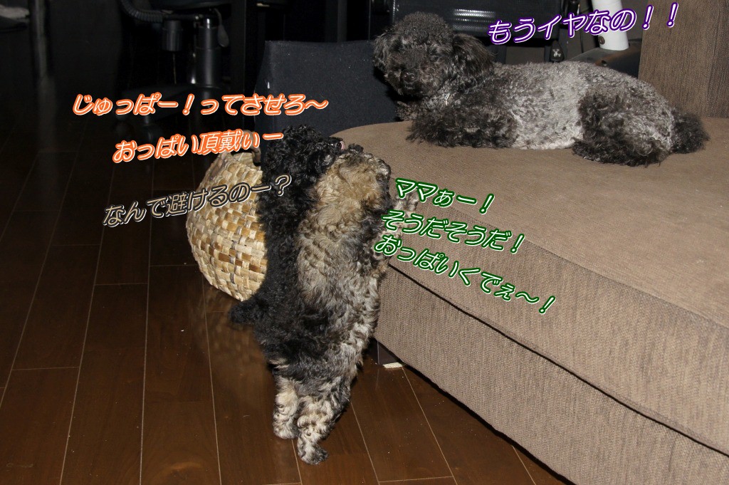 つか、近頃徹底して3パピーから逃げているおっぱい囓られ恐怖症のリリーはpapaを挟んで反対側で安心寝(笑)
