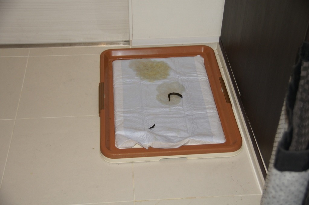 3パピーのうちの誰かがわざわざ寝室脇のスペースから遠路はるばる移動してウンチくんやらオシッコしているらしく。。