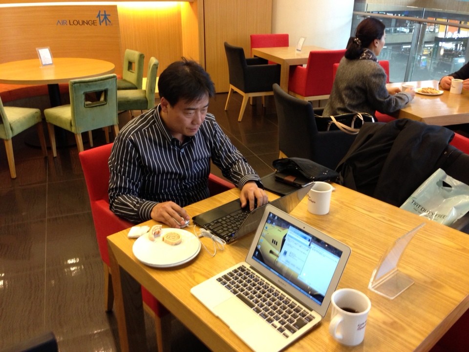数時間もの待機時間の中。空港のラウンジでお仕事ちゃんなり。。