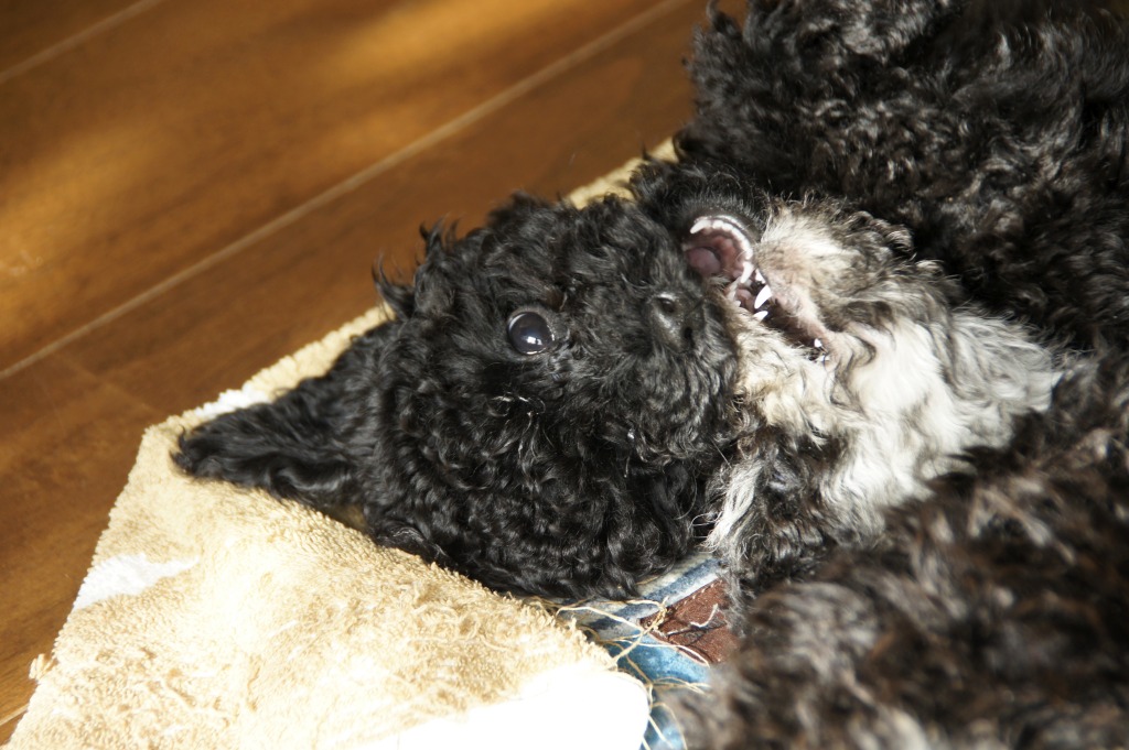 うんしょ!うんしょ!・・・ってひたすらタオルを囓りまくるバレ。。