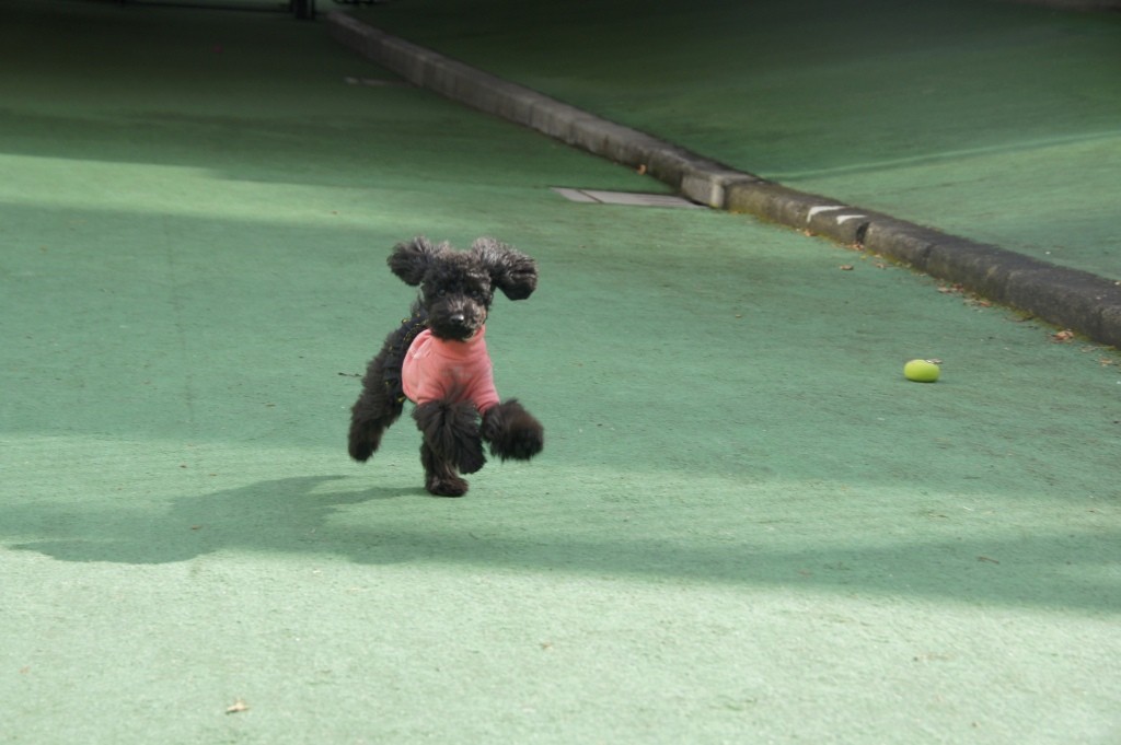 リリーは手術後、まだ抜糸はしていませんが、走りたくって仕方がないご様子。
