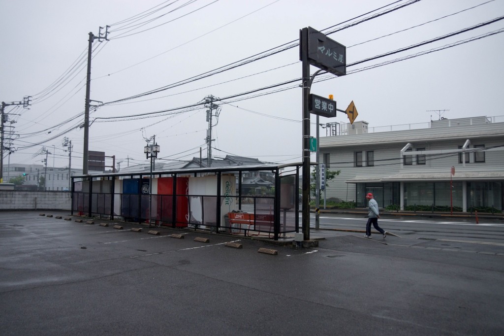 papaはこんな自動販売機のスタンドで雨宿りで雨宿りしながら人を待ちます。