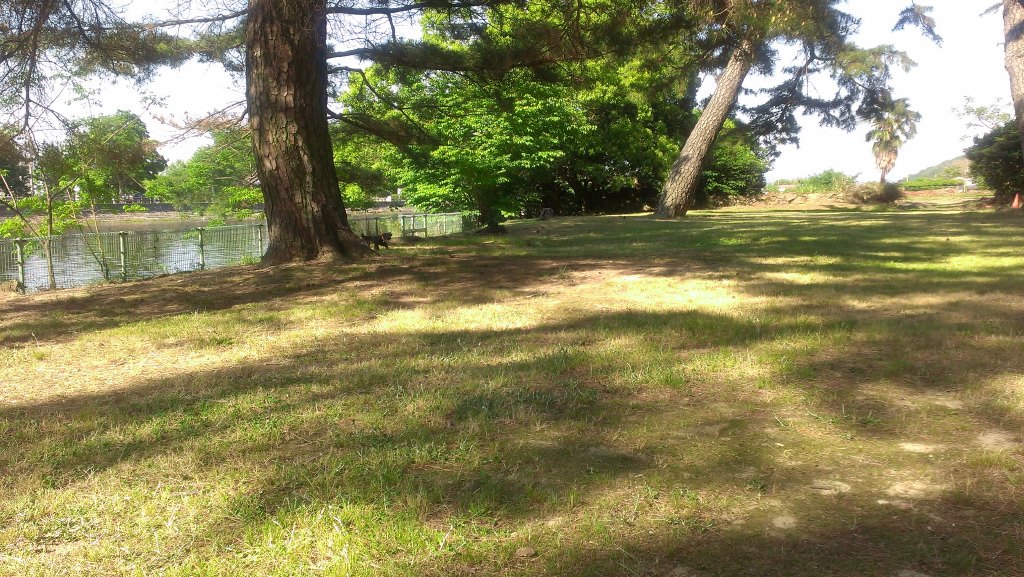 なんとか池の脇の林の日陰を見つけて、ほんの少しのボール遊び。。