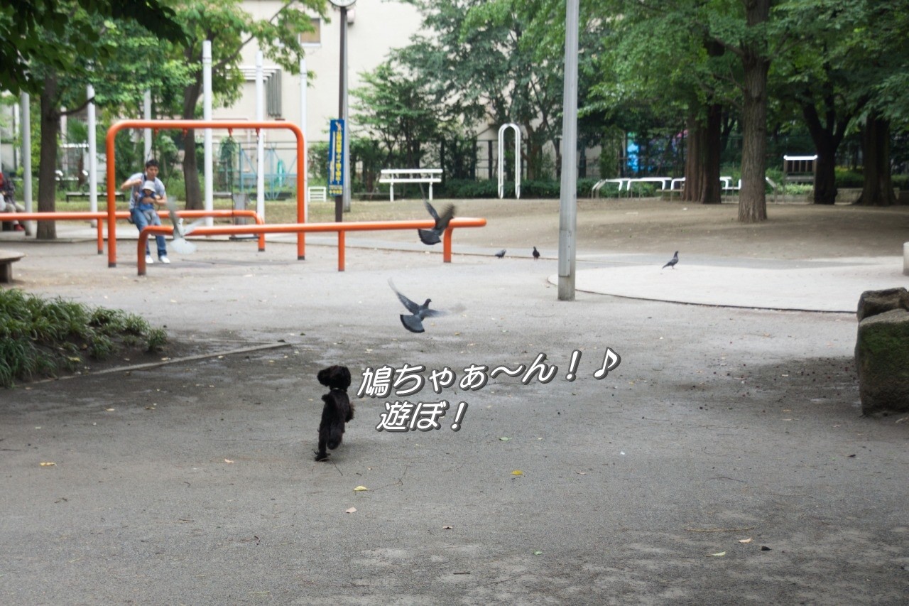 真下公園では、鳩ちゃん追いかけて朝から元気娘なドナ。。